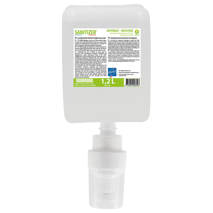 Découvrez notre lotion pour les mains sans parfum et sans colorant, une solution moussante désinfectante et antibactérienne de 1,2 L.